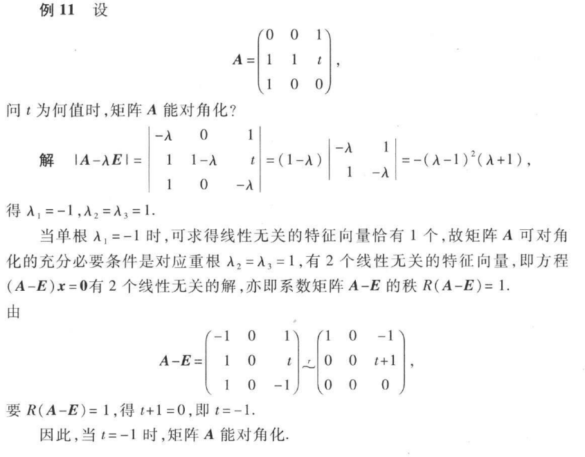 - 如果 n 阶矩阵 A 的 n 个特征值互不相等,则 A 与对角矩阵相似