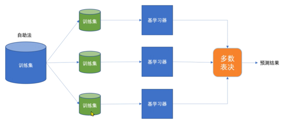 - 从原始数据集中,通过自助采样(有放回地随机选样本)生成多个不同的子数据集。