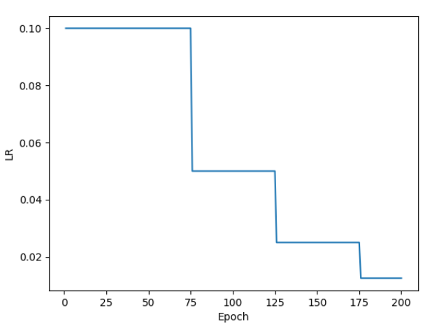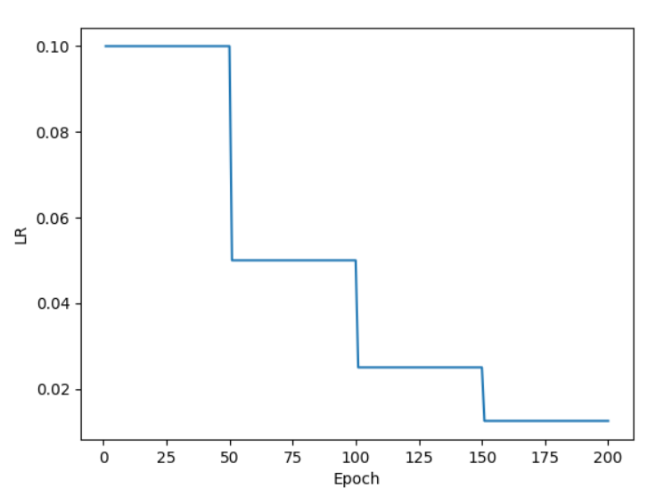 - 等间隔衰减:每隔固定的epoch就衰减一次